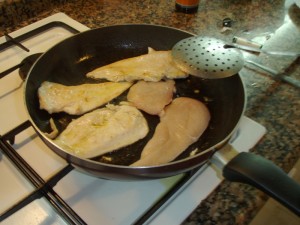 Y de segundo, unas pechugas de pollo caramelizadas con salsa de soja y acompañadas de unas patatas fritas con ajos.