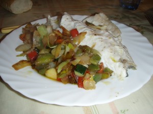 Autor Tema: Lubina al horno con verduras y sopa de pescado con gambón  (Leído 1948 veces)