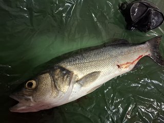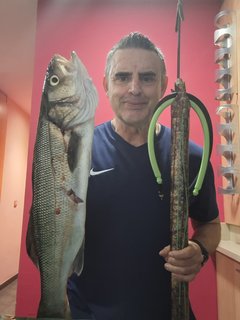 Lubina espera en posidoneaMe dio tambien bastante satisfaccion esta lubi, puesto que la zona era de fondo arenoso con clapas de posidonea, estando en una haciendo espera veo que a lo lejos vienen un par de lubis majetas, las reclamo pues van muy abiertas en trayectoria, parecen desaparecer, vuelvo a reclamar y al poco dan la vuelta y vienen tambien algo abiertas, el tiro a esta es con el doble goma bastante "estratosferico" al limite del alcance, rollo triple de Doncic, la clavo e intenta esconderse en la clapa de hierba colindante a la mia, tras subir y coger aire pues estaba ya apurado de la laaaaarga espera, bajo y la trinco para la saca.