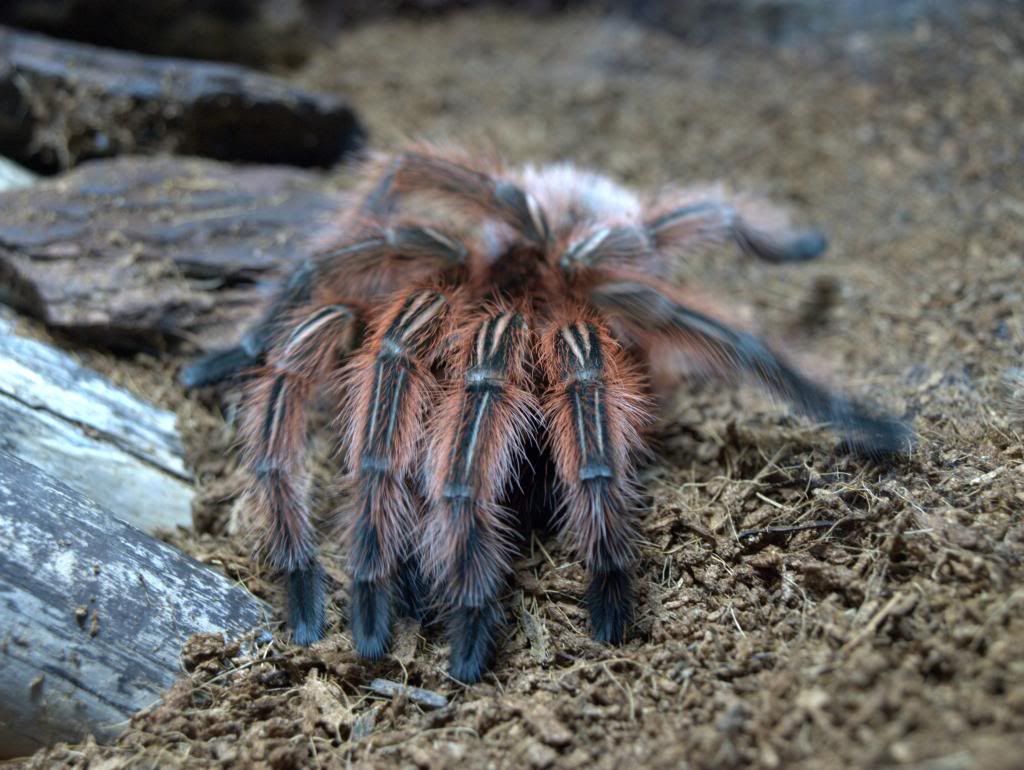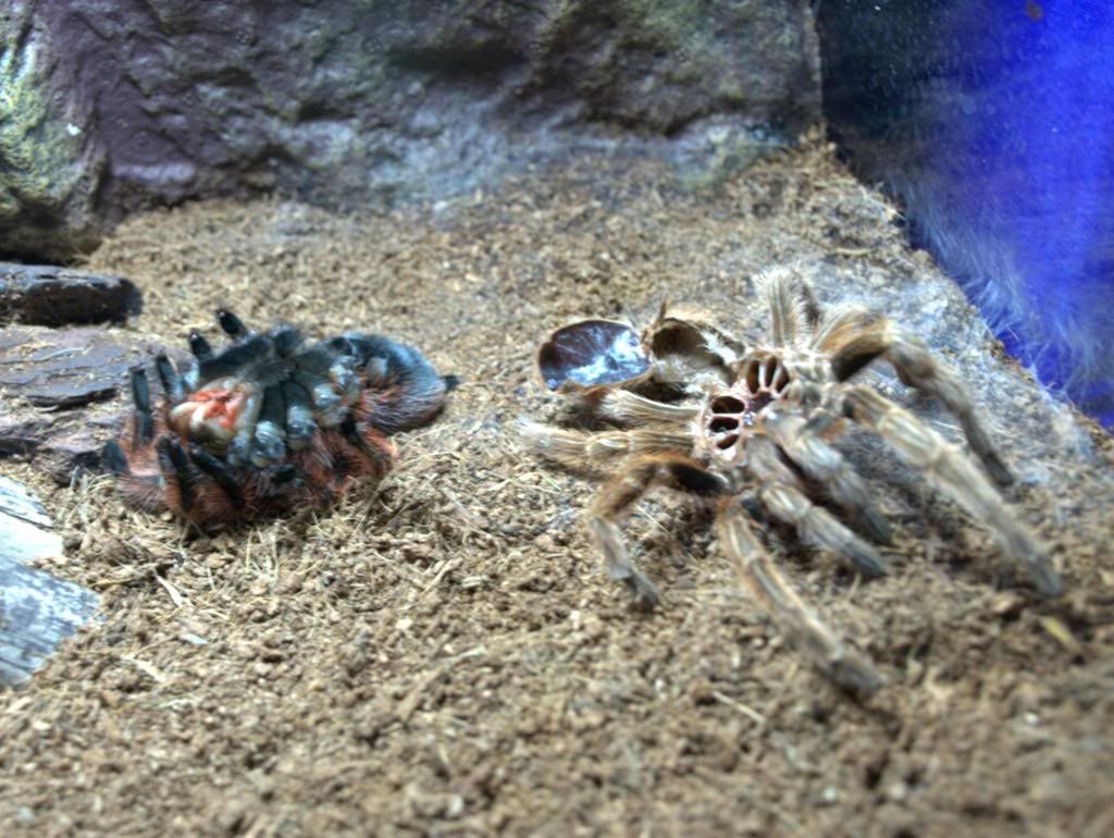 Recién mudada la piel Grammostola rosea, es mejicana y no tiene veneno, su único método de defensa si la cabreas mucho rasca el culo con las patas de atrás y suelta unos pelos urticantes