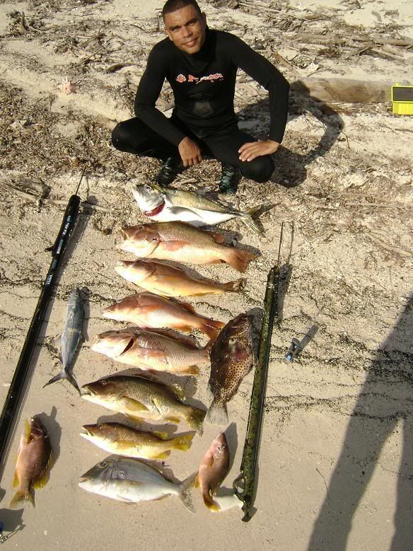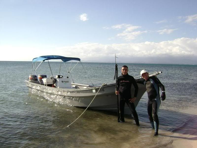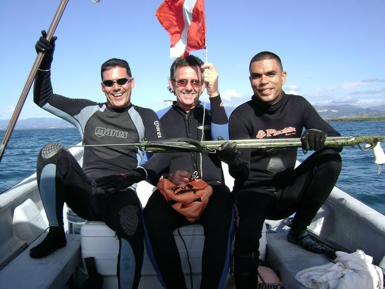 Al fin me pude mojar las escamas,ya casi se me olvidaba hasta como cargar el Fusil,,,,bueno pues sali hacia el sur de la isla con Jose (pepe yola) y Naranjo a un puntito que habian encontrado recientemente a explorar un poco mejor el area,,,,pues la verdad que habia buen movimiento,y si creen que los peces no se atragantan pues miren este mero,me llamo la atencion por el movimiento extraño que hacia como si tratara de sacarse algo de la boca y casi moribundo para mi sorpresa tenia un langostin atorado a medias en el buche,nunca he visto algo igual ,y para mi suerte hasta encontre los restos de un naufrajio viejisimo,,encontre parte de un timon redondo bastante grande en circuferencia parecido a los que utilizan los barcos de vela,y parte de los restos de (frame o esqueleto),, ,no me lleve el cover de la camara asi que no le pude tirar algunas fotos,solo faltaba (Marco) que esta congelandose el trasero en algun lugar al norte de los (Estados Unidos),,,,