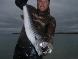 Implícita en la mental afirmación que me repetí a mi mismo tres veces en un segundo, iba un análisis pormenorizado de la situación: ¡Pedazo de bicharraco!. Había merecido la pena el madrugón, el largo trayecto en barca contra el mar, la inmensa satisfacción que supone ponerse el traje húmedo y helado bajo una insistente lluvia mañanera solo comparable en comodidad con el incordioso vaivén de la mar de fondo de levante.