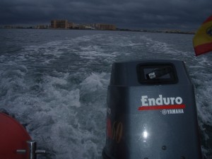 El recuerdo del debate interno que unas horas antes mantenía con migo mismo sobre la conveniencia o no de salir a pescar hoy, dadas las condiciones climáticas, me viene a la mente justo ahora, antes de tocar el fondo, como una de las anécdotas que voy a contar en la entrada de mi blog. El fuerte levante que sopló anoche borró casi por completo mis esperanzas de poder salir, y sin embargo esta mañana el mar se ha levantado calmado y ligeramente ondulado. Ante esta imagen y con pensamientos absolutamente impuros, no me he podido resistir ni un poquito.