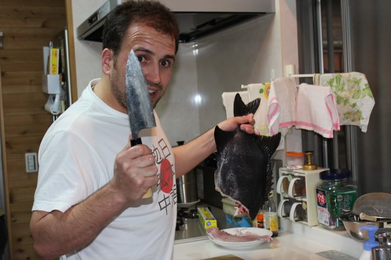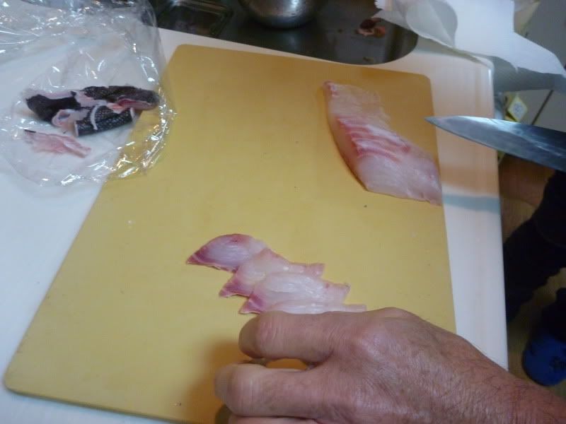 Y un par de fotos despiezando el pescado. Primero los ishidai y luego el sujiara.