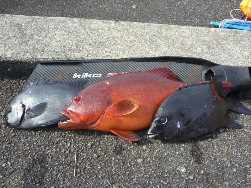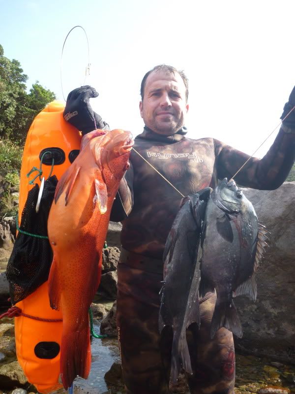 La primera pieza del dia fue el mero rojo, llamado sujiara. Lo pille a la caida con un tiro muy lejano, que casi no penetro en el mero, pero porque toco hueso.