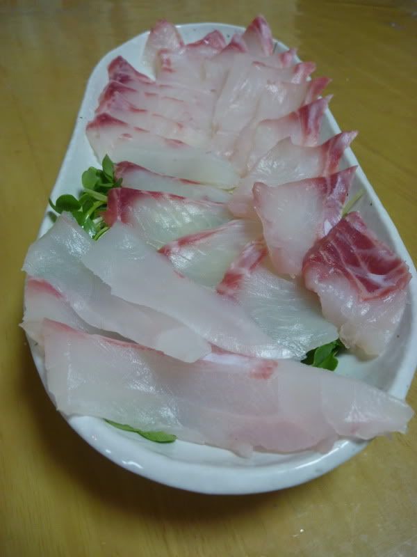 Y este es de ishidai pescado el martes. A mi me gusto mucho mas el sashimi de pescado de hace unos dias. Esta mas suave y dulce que el fresco fresco.
